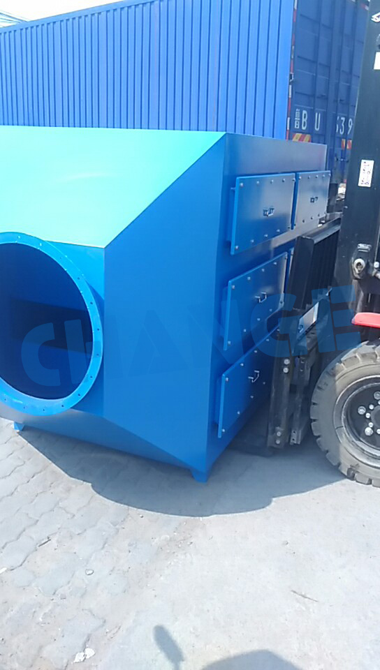 圖為我公司發(fā)往大連某工程活性炭?jī)艋O(shè)備,客戶主要用于熱處理爐煙氣收集。